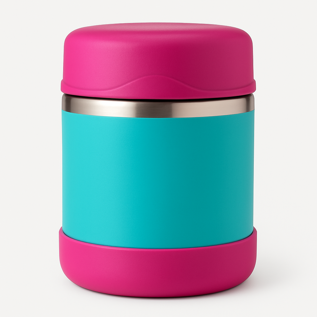 Vacuum insulated stainless steel food jar. Keeps food hot for 5 hours. Perfect for soups, pasta, and rice.