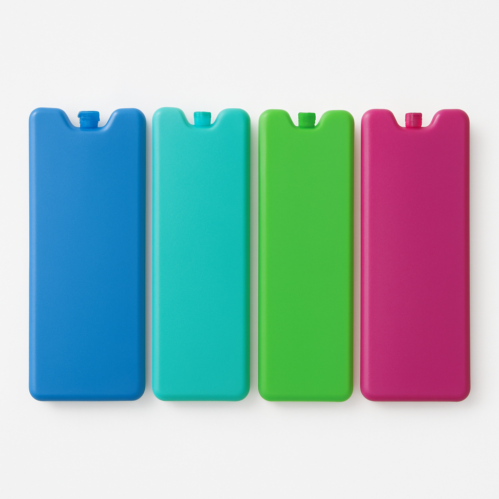 Slim, reusable ice packs sized for lunchboxes. Freeze overnight, keeps food cool until lunchtime.